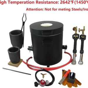 - 【High Efficiency】Propane Furnace is made of steel( 1.5mm thick) with 2 inches inner ceramic fiber insulation, superior strength and durable. Highly resistant to corrosion, safe enough. Gas Metal Melting Furnace is used to melt copper, gold, silver, aluminum, zinc, tin and other metals with melting points below 2372℉(1300℃). Suitable for DIY, jewelry processing factories, industrial and workshop applications. Attention: It can not melt steel, iron.